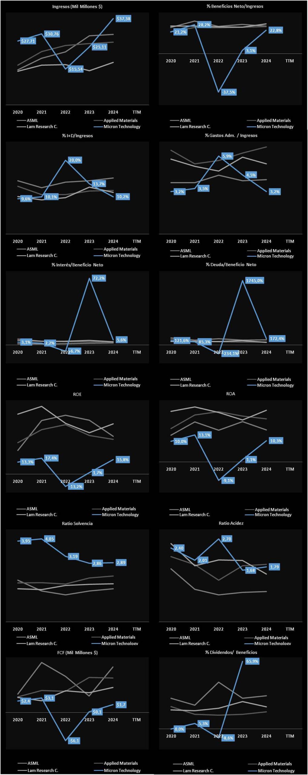 - Riesgos Geopolíticos: Las tensiones entre EE. UU. y China, así como posibles restricciones a las exportaciones de tecnología, pueden perjudicar las operaciones de Micron.